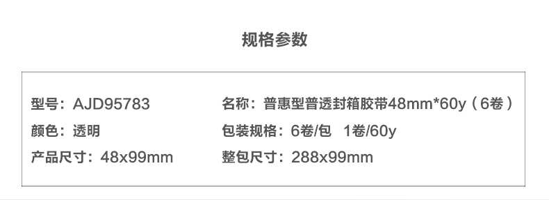 • 商品名称:晨光普惠普透封箱胶带48mm*60y6卷AJD95783