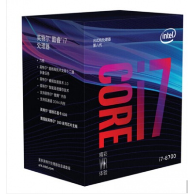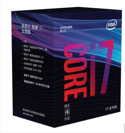 • 商品名称:英特尔(Intel) i7 8700 酷睿六核 盒装CPU处理器
