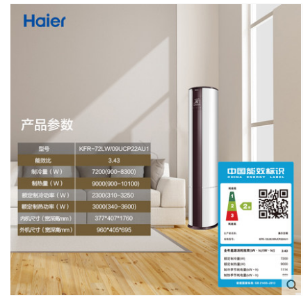 • 商品名称:Haier/海尔 KFR-72LW/09UCP22AU1 3匹变频除PM2.5自清洁空调柜机